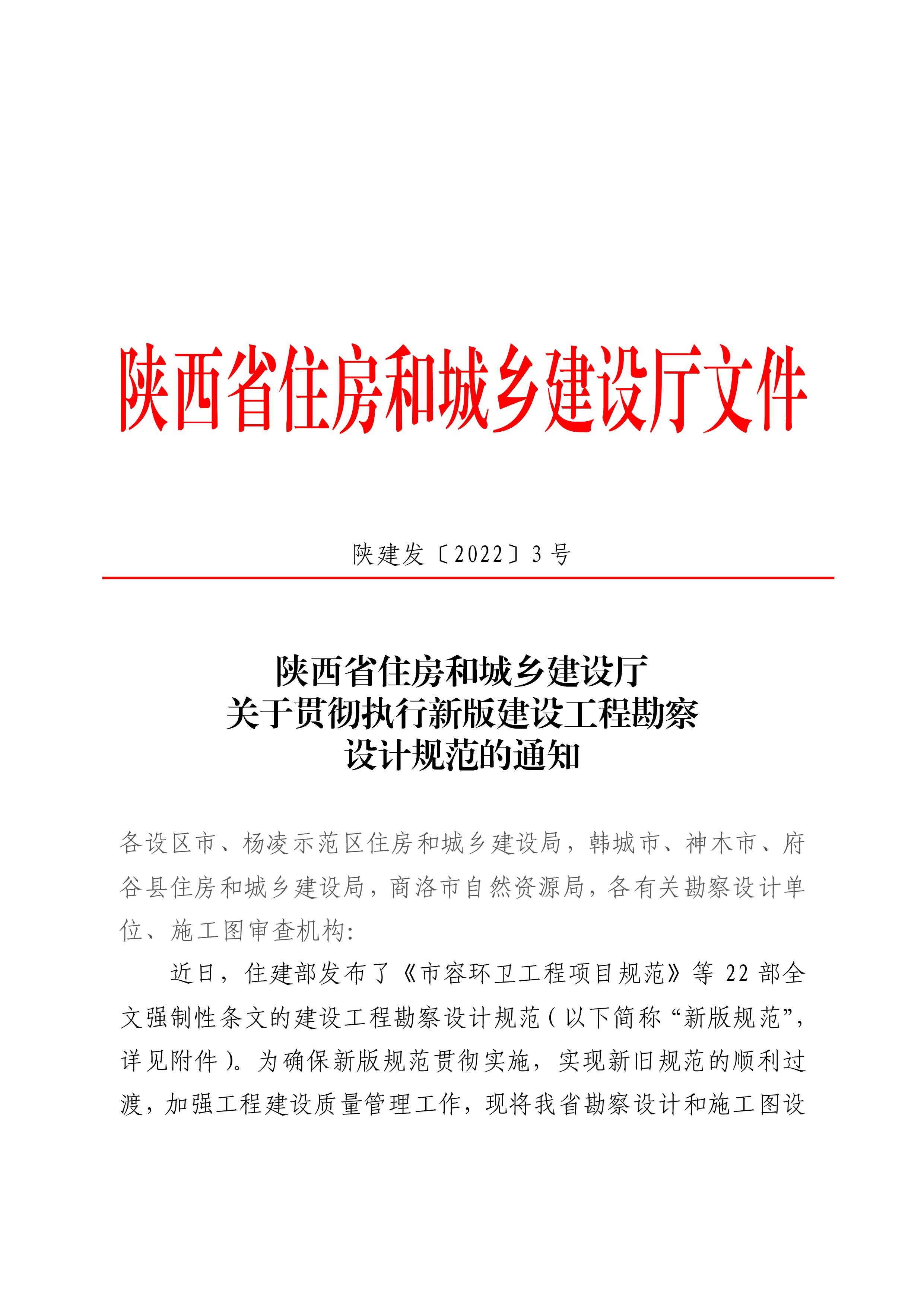 陕西省住房和城乡建设厅关于贯彻执行新版建设工程勘察设计规范的通知